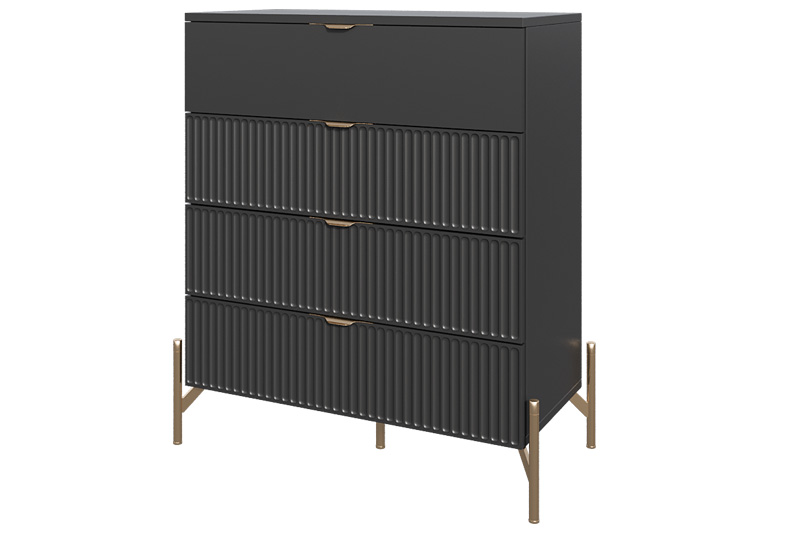 Комод «Нео» — это выразительное сочетание минимализма и архитектурной пластики. Его строгая геометрия смягчается ритмичной текстурой фасада, создавая эффект глубины и динамики.